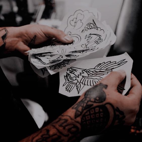 Намітивши сферу, до якої належатиме тату, та її суть, можна переходити до пошуку конкретного ескізу. Один і той же малюнок і напис можуть бути виконані в різних техніках, в кольорі або чорно-білій гамі, мініатюрі або великому розмірі.