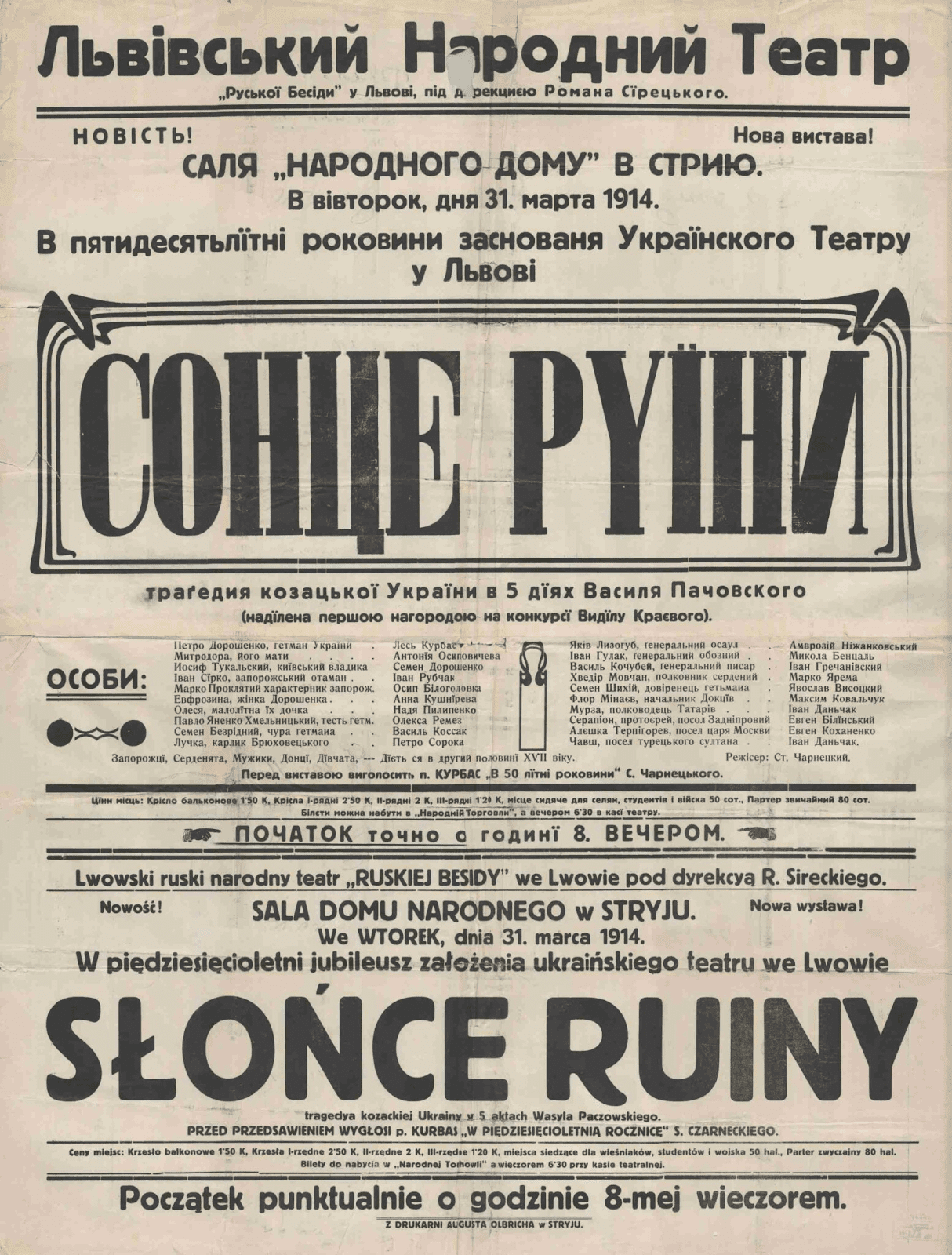 Акторами театральної трупи стали діячі Харківського українського драматичного театру ім. І. Франка, “Березолю” та низки одеських театрів. Трупа гастролювала у межах Одещини й Херсонщини, і лише за 1 місяць їх вистави відвідали понад 10 тисяч людей!